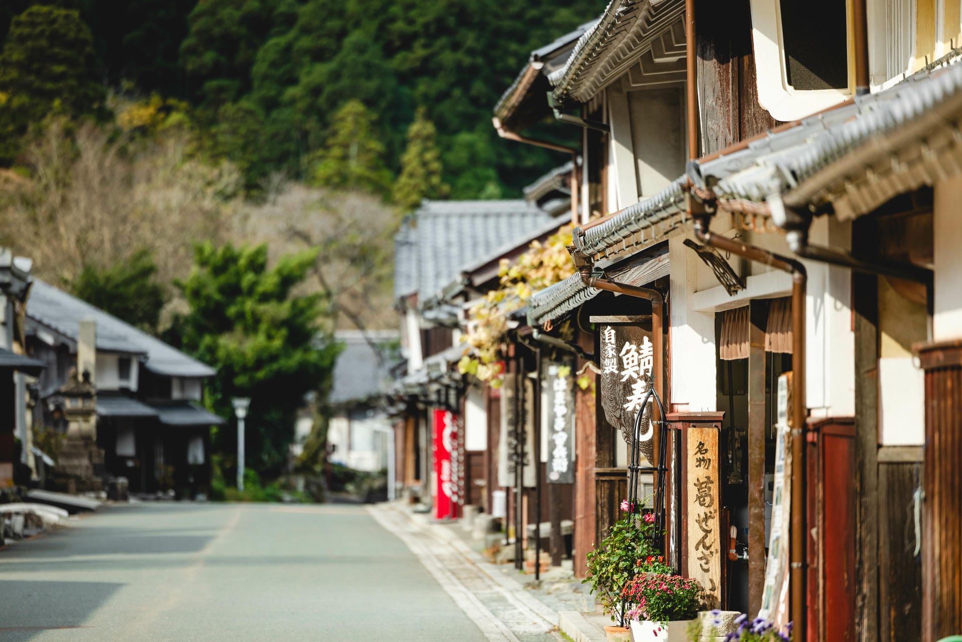 現在は平入(ひらいり)と妻入(つまいり)、あるいは真壁造(しんかべづくり)塗込造(ぬりごめづくり)の建物が混在するなど、多様な建物が立ち並んでいます。1996年には文部科学省より重要伝統的建造物群保存地区(重伝建)として選定されました。